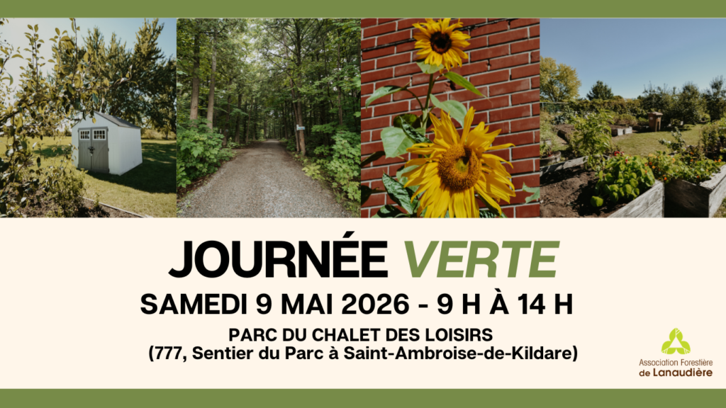 La Municipalité de Saint-Ambroise-de-Kildare est fière de vous inviter à la journée verte qui aura lieu le samedi 9 mai 2026 de 9 h à 14 h au Parc du Chalet des loisirs, beau temps, mauvais temps!